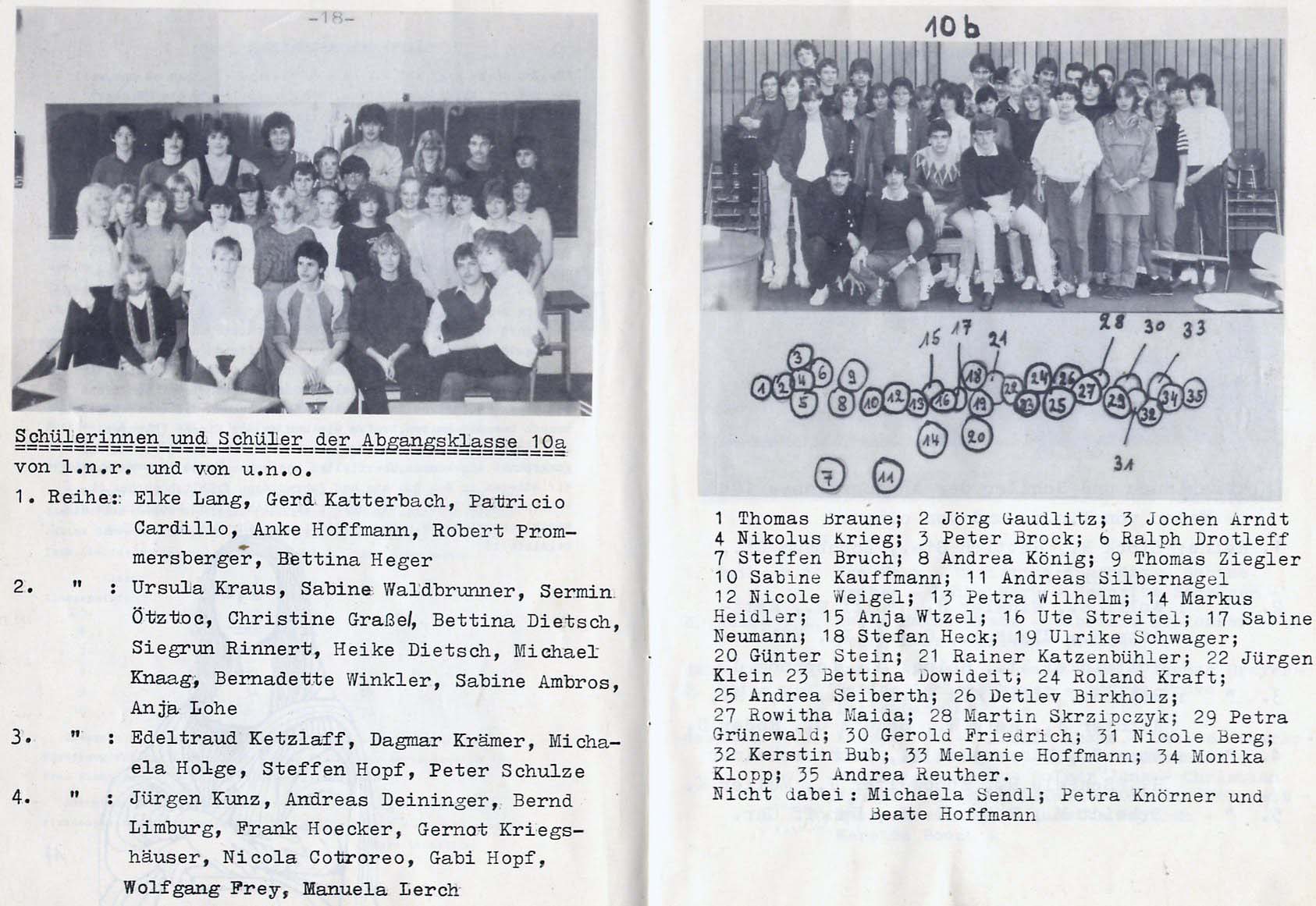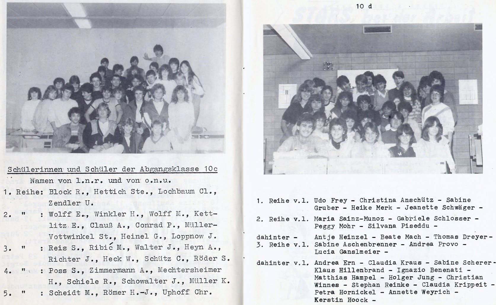 Es fehlt nur noch ein Klassenfoto der 10a und 10c. Waren die früher im Notendurchschnitt nicht auch etwas hinten dran? :-) Dazu Zitat von Bernd Limburg (Schulsprecher 1984): Mal sehen, ob es bis zum Jahrgangstreffen klappt beide Fotos auf diese Web-Seite zu bringen. Wir dürfen alle gespannt sein. Welche Klasse ist die nächste? Wer ist Schlußlicht? ;-) . |